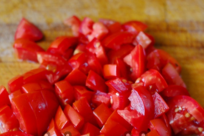We clean and chop the tomatoes in approximately the same slices as eggplant.