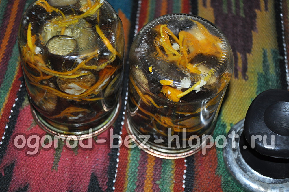 We lay out the ready-made eggplants in jars, ram them tightly, pour the remaining marinade into jars so that it completely covers the eggplants.