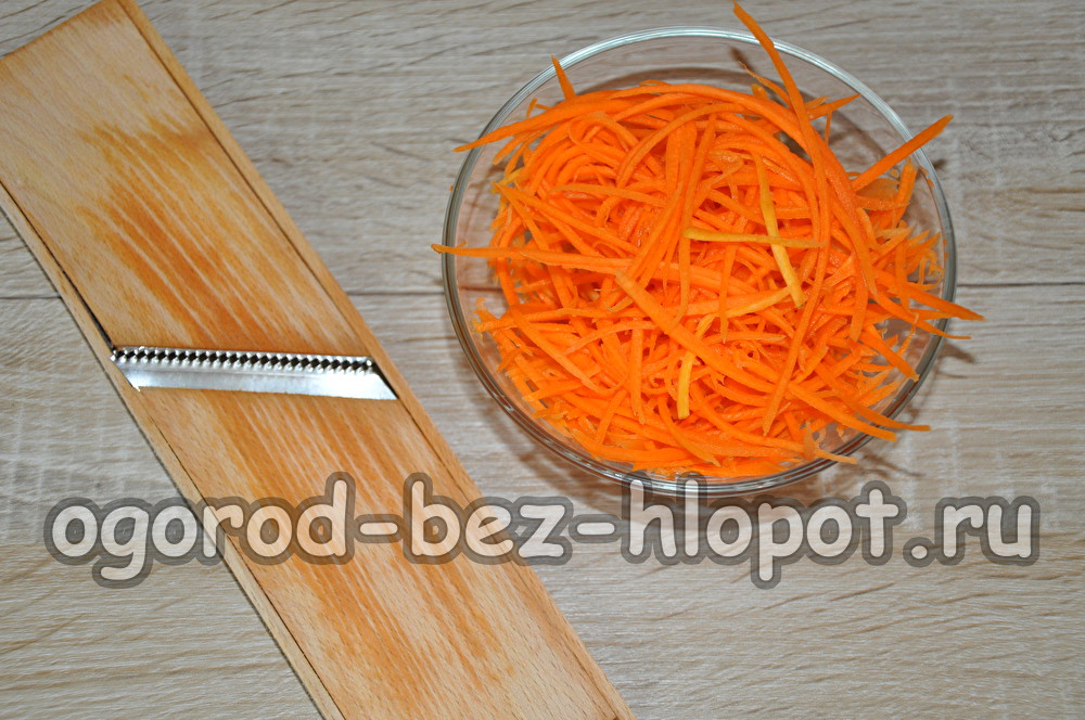 While the eggplants are baked, we clean the carrots, wash them and grate them for Korean carrots.