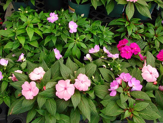 Balsam Niamese - New Guinean hybrids are characterized by colorful leaves of green and even bronze color, sometimes with a yellow middle. These perennials bloom profusely and almost all year round, the flowers are large. The most famous representative is Hocker's balsam with large flowers and elongated dark green leaves.