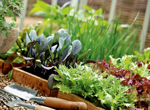 Chives, spinach and salad: