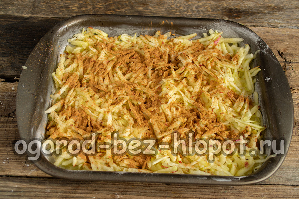 We cut the apples, remove the core, rub on a large vegetable grater. Put half the grated apples in a mold.