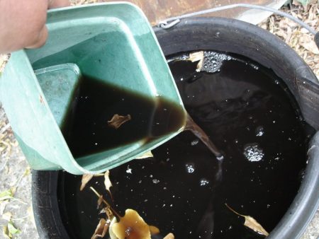 - dilute 1/2 kg of compost or chicken manure in a liquid;