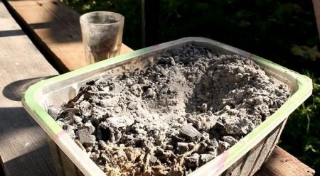 - pour 250 g of wood ash into a liter of hot water;