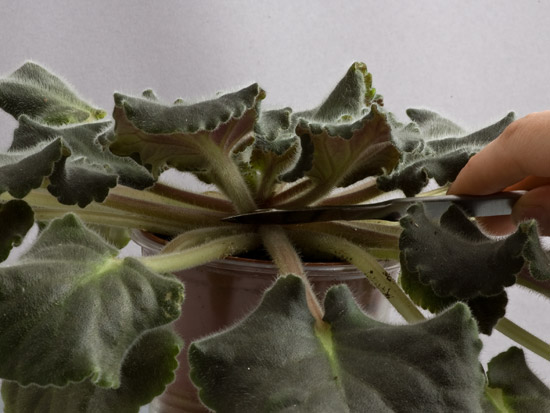 To treat the flower stalk with the drug, it must be applied in a small amount to a clean sharp needle and make three small injections in the sinus of the stipulus. Next, gently wipe the excess paste with a clean cloth. So that the senpolia does not deplete during the formation of the processes, it must be fed with nitrogen-containing fertilizers twice a month.