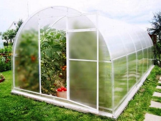 It is not necessary to mulch the soil in a polycarbonate greenhouse and this is a huge advantage of this design over film options. Eggplant, tomatoes and peppers can be planted in one greenhouse. But you need to make sure that the bushes do not obscure each other. Peppers are recommended to be planted in the first row from the walls.