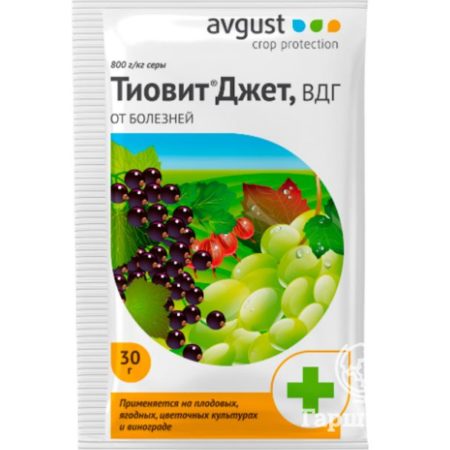Features Tiovit Jet is effective at a certain temperature: from 20 to 28 degrees of heat. At optimal environmental conditions, Thiovit lasts up to 10 days, providing plants with reliable protection. It is also noted that Tiovit is not addictive in microorganisms, and therefore it can be used annually.