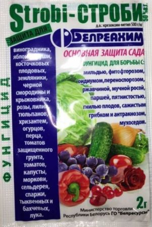 Features Strobi is popular due to its effectiveness and low toxicity. It does not accumulate in soil and water, is harmless to bees. In addition, the plants themselves do not suffer from multiple sprayings - treatment can be carried out even during flowering. The drug is not washed off by precipitation. It can be used at temperatures up to -4 degrees.