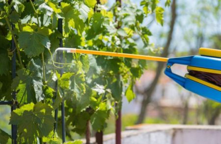 Treatment with fungicides begins as early as possible, usually at the very beginning of the season, even before the infection appeared in the garden. Thorough spraying of grapes is carried out before the swelling of the kidneys. When flowering, treatment with copper-containing solutions is not carried out, since this element can accumulate in different parts of plants.