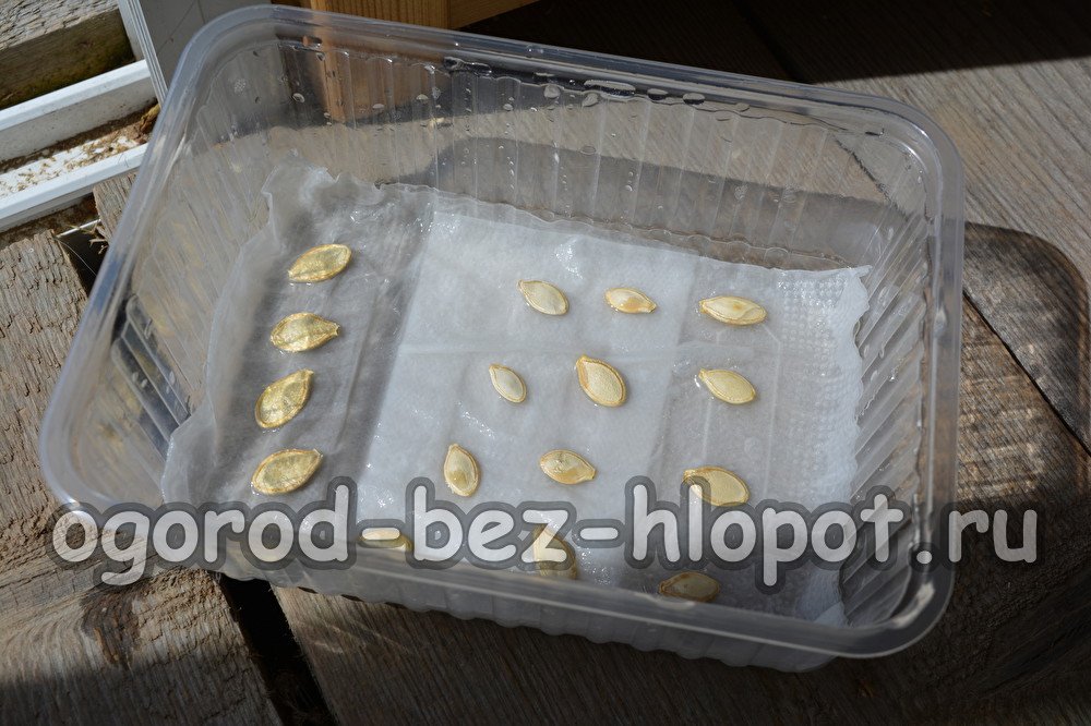 In order to obtain one hundred percent germination, zucchini seeds need to be soaked in a stimulating solution of Epin or Ovary. In a humid and warm environment, the root should appear on the third day. If this did not happen, then one should doubt the quality of the seed and, before it is too late, replace it.
