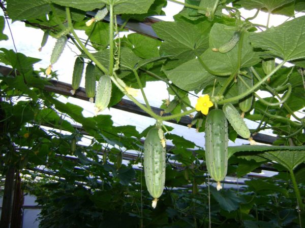 Parthenocarpic hybrids form one stem, since all flowers are only female. Leaves and ovaries are left on it, shoots are removed. The method is used on an industrial scale, bushes are grown in height, a lot of space for them is not required.