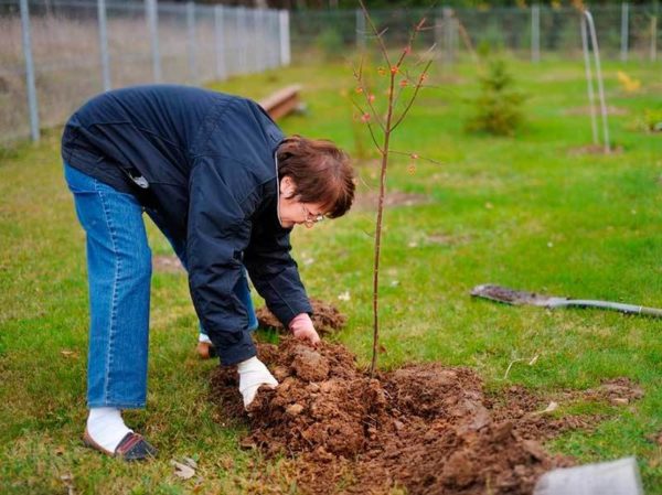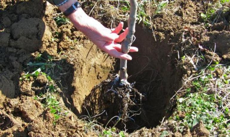 - if the dimensions of the roots with a lump of earth are larger or smaller than the diameter of the pit, then it is increased or decreased;
