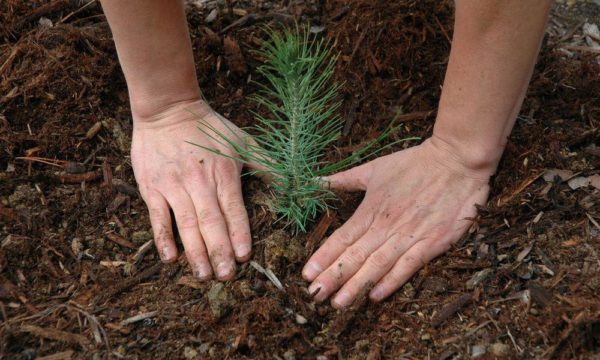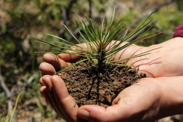 Transplanting seedlings from the forest