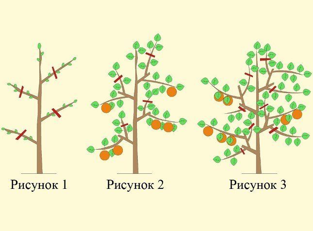 Large fruits are obtained due to the annual formation of fruit links, removal of weakened (damaged) branches, normalization of flowers first, then ovaries. When forming a fruit link, the following schemes are followed: