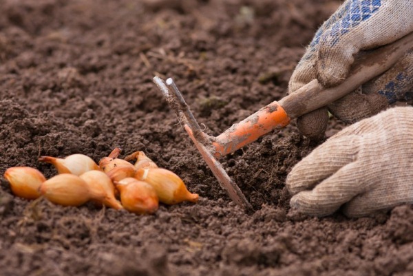 Seed is planted in cloudy and dry weather. Bulbs are immersed in the ground “on the shoulders” and sprinkled with ash and earth on top. This makes it possible to take root well and enhances the nutritional and protective properties of the soil.