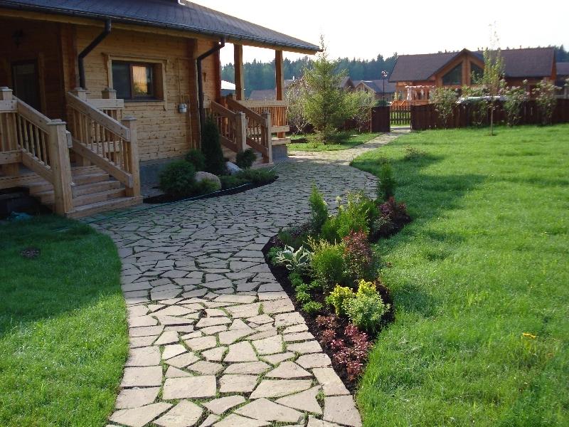 An interesting section looks on which there are paths of different widths. The path leading from the gate or from the garden to the house should be made no longer than 1.5 meters, and emphasize its borders with pegs or bricks. Several paths connecting different zones and objects can have a width sufficient for the passage of one person - about 0.5-0.6 m.