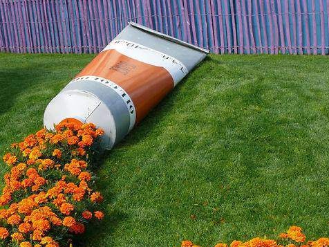 - Broken wooden furniture, a bicycle, a trolley, musical instruments and other unnecessary things can be made part of the installation. Particularly interesting is the item in the overgrown, grass or shrubbery, a corner where you do not expect to meet it.