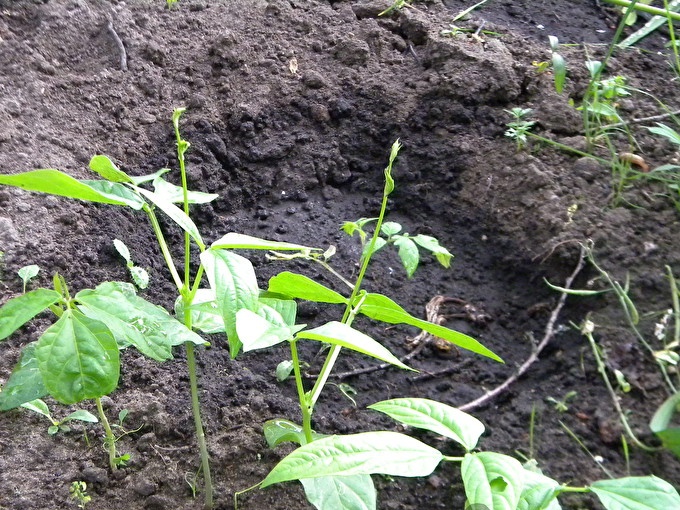 1. Dig a bed if you did not do this in the fall. Level the soil with a rake, and then use a hoe or other convenient tool to make a groove up to 4 cm deep on the garden bed. If the ground is wet, you do not need to water it additionally. If the soil is dry, fill the groove with water from the watering can and wait until the liquid is absorbed into the ground. Then spread the beans in the furrow at a distance of 7-10 cm from each other. Cover them with a layer of moist earth, and sprinkle dry earth on top so that the soil holds moisture longer and allows the beans to sprout.