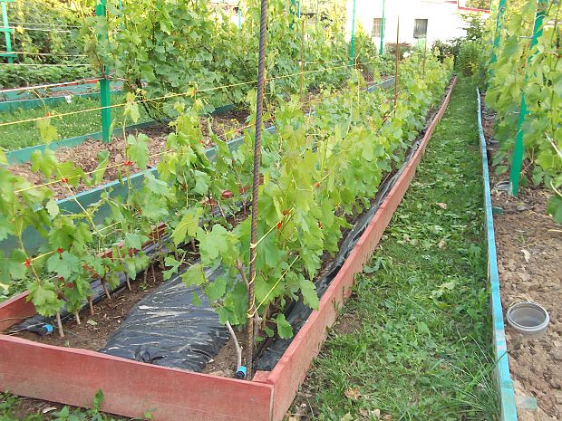 You will need to install an additional trellis along the trench with grapes. Pull the wire horizontally and in several tiers. The wires must be in the same plane and the first to the ground should have a distance of 30 centimeters.