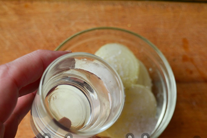 Transfer the chopped rings into a deep bowl or pan. Also, for pickling, you can use a food sudok with a lid or a jar with a twisting lid.
