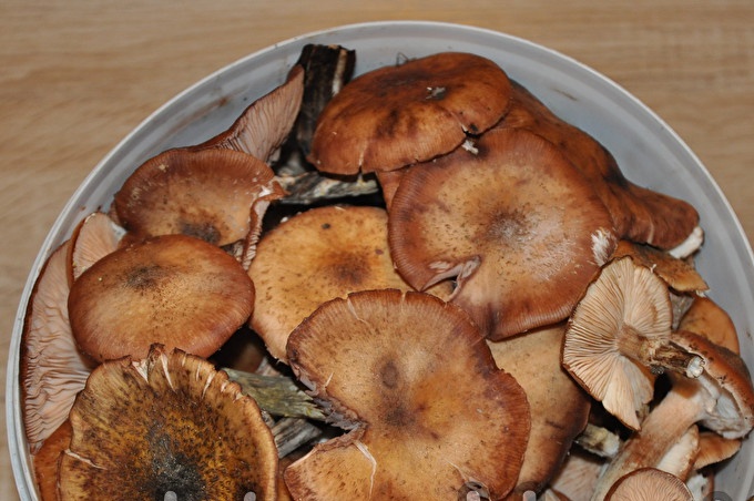 Next, honey mushrooms should be cleaned of debris and dirt, scraped off the leg (the hat is not cleaned from honey mushrooms) and be sure to remove the skirt under the hat.