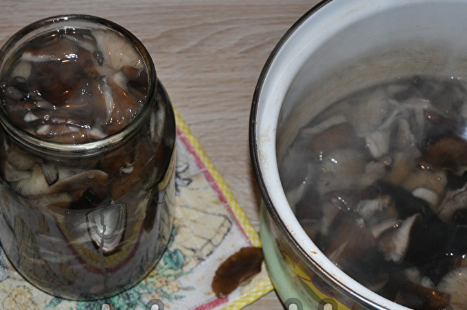Pour boiled mushrooms hot on previously sterilized jars, cover with boiled lids and roll up. After cooling, the mushrooms are stored in a cool place.
