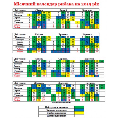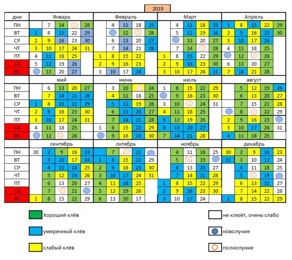 For example, if in the Voronezh region the fisherman’s calendar for 2019 indicates a good nibble, but a cyclone is rampant in the region, then you need to reconsider the trip to the reservoir and transfer it to calmer days or months.