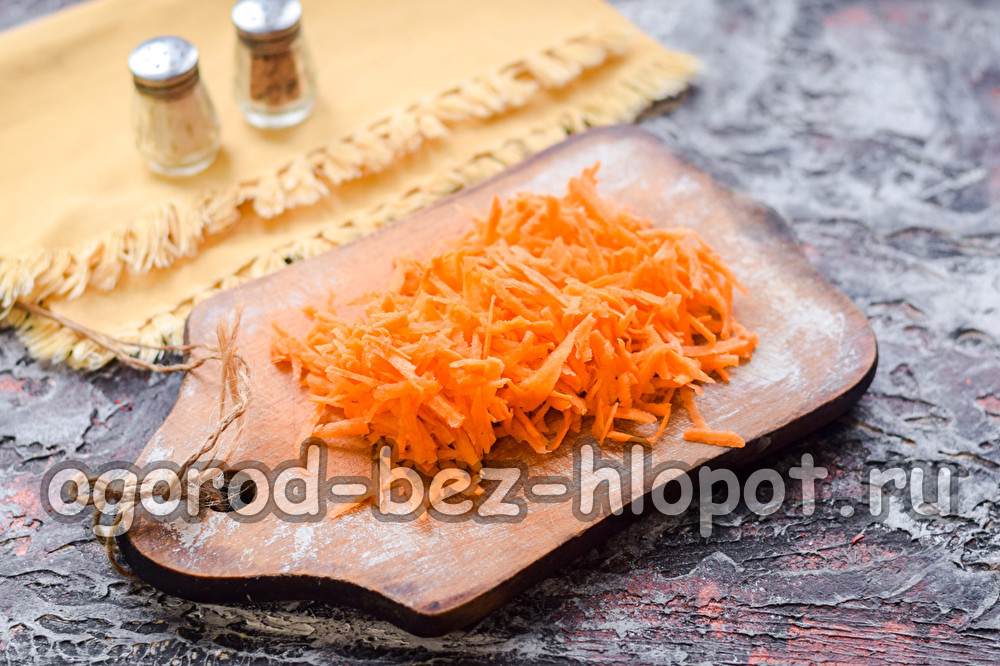 Peel the carrots, rinse, dry. You can grate the carrots on a coarse grater or cut into cubes - as you like.