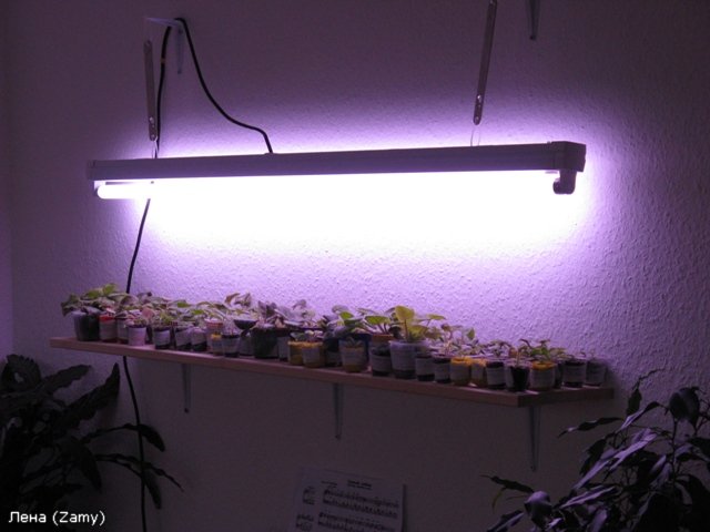 Luminescent phytolamps are considered the most suitable for lighting domestic plants, because they are closer to daylight. These devices are much more economical than incandescent lamps. Balsams and senpolia, which are highlighted with such lamps, delight with their flowering all winter. The advantages of the device also include a high radiation return with minimal heating, which greatly reduces the risk of burns of the deciduous part.