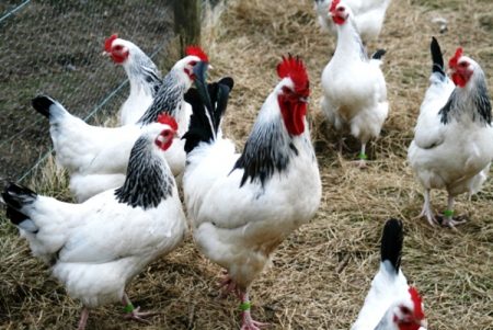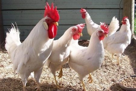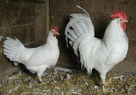 The breed includes different subspecies, but the most popular of them with a white color. A chicken carries up to 300 eggs with a weight of 58 g per year.