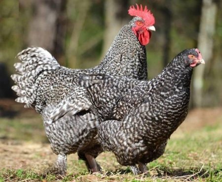 The bird is large, has a clear outline and an original color. Cross includes 12 varieties, depending on the color of the feathers. Sussexes are often found in Russia - black and blue. On average, Dominant lays 300 eggs per year. The weight of an adult chicken is 2.5 kg., Rooster - 2.8 kg.