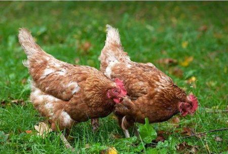 Females rush from the 17th week. Daily chickens are not difficult to divide into males and chickens, because they have different color feathers. A female gives 220 brown eggs a year, which weigh 61 g. A day, she consumes 125 g of special food.
