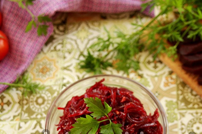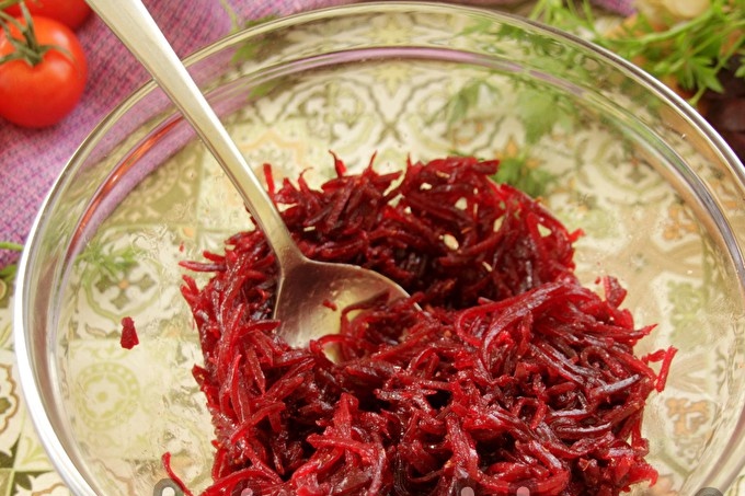 Do you know Korean beetroot recipe? This is a great instant snack, which is always obtained and liked by almost everyone. You will need seasoning for Korean carrots, it can be bought at any store without any problems. And you can choose the spices yourself: mix ground coriander, red ground pepper (chili), ground black pepper, paprika and dried basil and marjoram. The total number of spices should be as follows: 1 tablespoon per 300 g of beets, as indicated in this recipe with Korean-style instant beets.