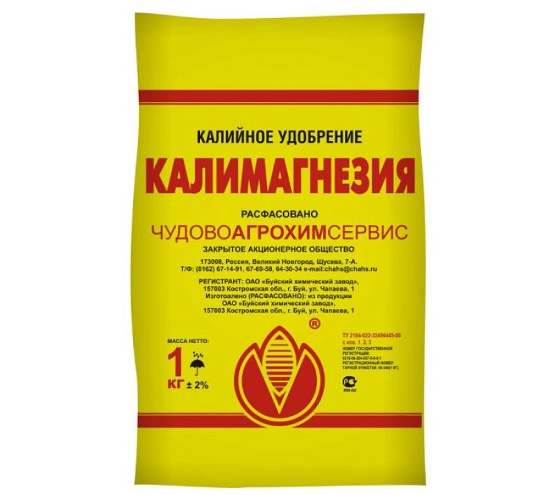 It is a combination of potassium and magnesium. Used for all types of soil. However, on sandy soils, the components are quickly washed out, therefore, fertilizing is carried out more often.