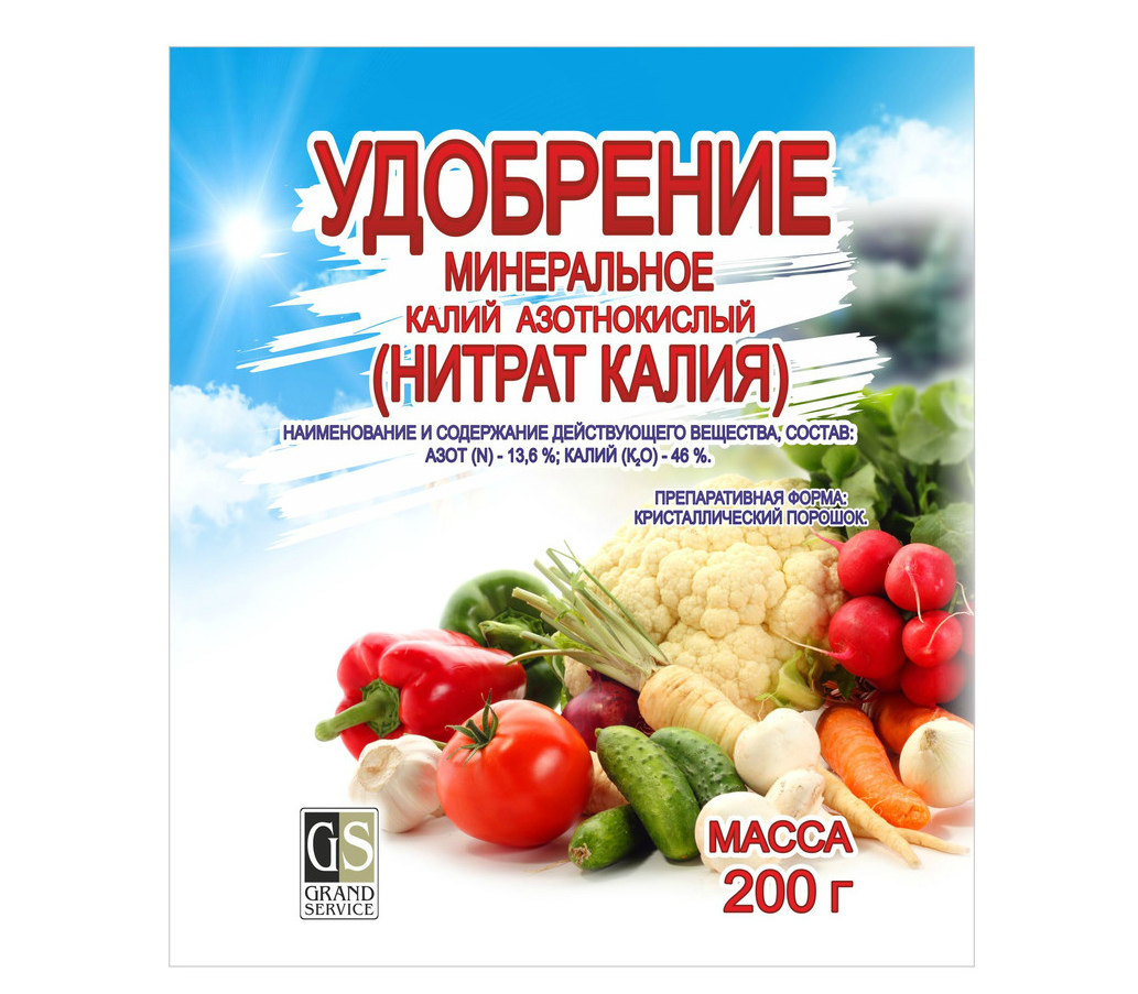 Another name for fertilizer is potassium nitrate. Like previous fertilizers, great for tomatoes, because the composition does not contain chlorine.The potassium nitrate complex includes potassium and nitrogen, it is used during the period of fruit formation. It has several advantages: