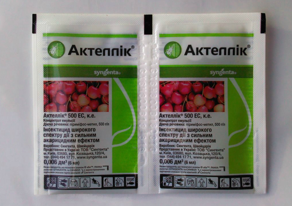 Gardeners use them with increased caution, otherwise the level of concentration of toxic substances in fruits increases many times. The list of effective means to combat the invasion of the beetle includes 5% concentrate emulsion "Aktellik." It belongs to insecticides with a wide range of influence, used no more than 2 times during the period of the second season. For every 10 liters of water is taken 15 g of the substance. The recommended consumption level is 1 l per every 10m2.