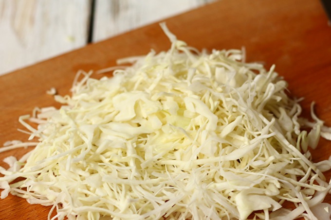 Thinly chop the cabbage with a knife, shredder, using a special grater or food processor with the appropriate nozzle.