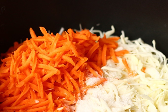 The preparation of this sauerkraut is based on the natural process of lactic fermentation, for which salt and cabbage juice are necessary. Nothing more is needed for crisp and juicy sauerkraut! Even the traditional grated carrot is an additional ingredient. Cooking snacks pretty quick - it takes only 2-5 days, depending on the amount of cabbage.