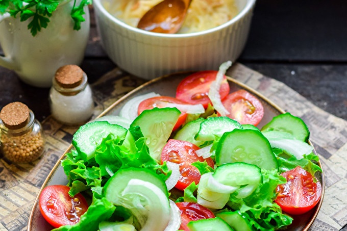 Serve a vegetable salad to the table can be with different types of side dishes - porridge, potatoes, meat, poultry or fish. Also, this salad will be the perfect option for a light dinner. Well, let's get down to it.