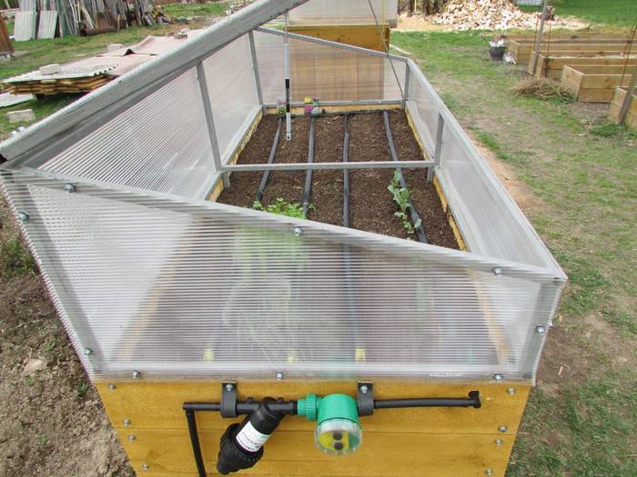 In a multi-layered bed with a large amount of organic matter and substrates that protect against frozen ground, an intensive process of decay will begin, accompanied by the release of heat. After 14 days after the organization of the warm ridge, you can make crops of greenery, seedlings, root crops, early ripe vegetables.