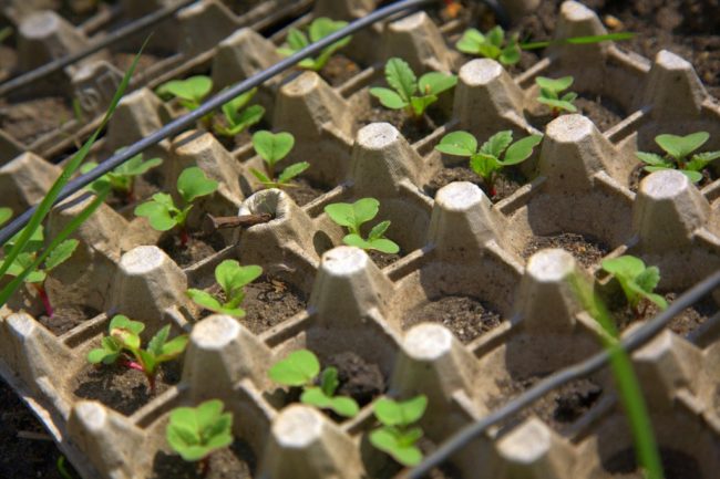 Using an egg box will allow you to rationally use the seed, get the right planting without weeds, eliminate the stage of thinning of the seedlings, ensure that the moisture inside the substrate is preserved.