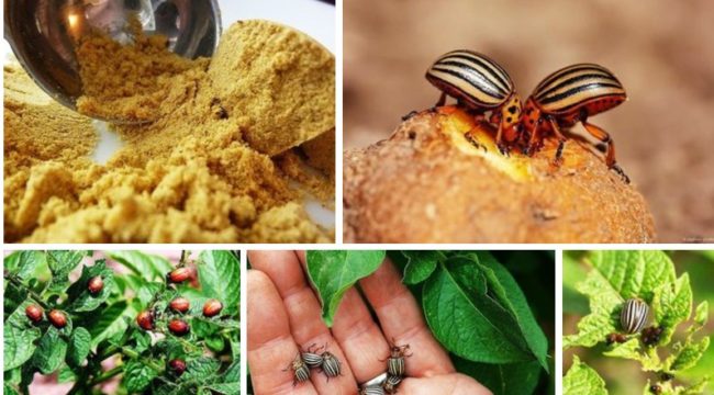 Mustard powder is diluted in water and left to stand for 24 hours. Then pour in vinegar, mixed with grated household soap. Cooked means sprayed plants infected with the Colorado potato beetle. The treatment is carried out in dry weather in the evening when there is no active sun.