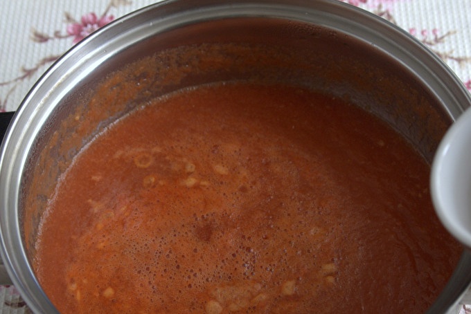 Due to the natural acid, the sauce is successfully stored in any place (kitchen cupboard, pantry, cellar) for a long time. This allows you to prepare a large amount of tomato-apple sauce for future use.