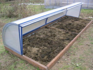 Thanks to the hinged lid in the winter snow falls inside the greenhouse. Its a bit, but enough to ensure that the earth does not dry out and does not lose salt. Removable cover protects plants from overheating. It is much better than the window leaf: since the window leaf occupies a limited area, warming up is uneven.