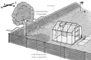 Placing greenhouses in a modest area is easy, but if the site is large, the placement requires a competent approach. It is better to install the structure in a southerly or southeastern direction. Experienced gardeners do not recommend putting a greenhouse in the north or west. Placing under a tree or right outside the house is also undesirable: a permanent shadow is not the best option for growing crops. A good place is not far from the house or the fence, so that the greenhouse is protected from cold winds.