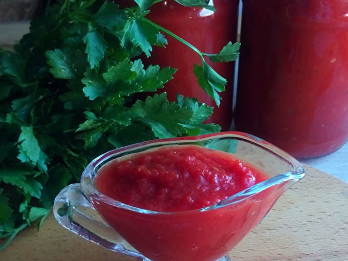 Cook on health. Ketchup, cooked at home with their own hands, always exceeds the store's taste.