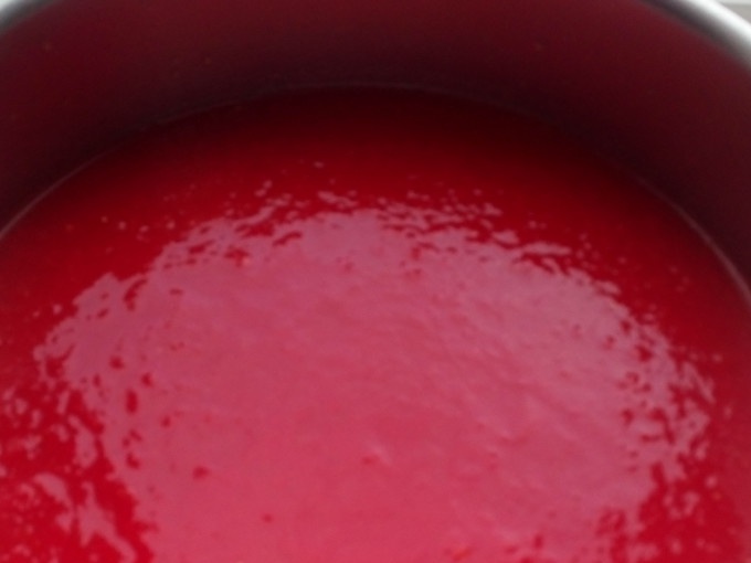 Thickened tomato mass is removed from the oven. After cooling a little, we grind the mass through a metal sieve, getting rid of the skins and seeds of tomatoes.