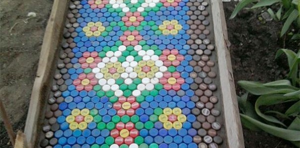 An excellent option for the use of plastic bottles is the construction of the country lanes. The polymer does not rot, is resistant to mechanical loads, easy to install. Lay paths along the beds, to the outbuildings, lay out the area in front of the house using the cut-off bottoms.