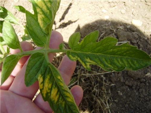 - a magnesium deficiency can be indicated by the yellow color along the veins on the leaves;