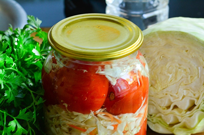 How to cook cabbage with tomatoes for the winter